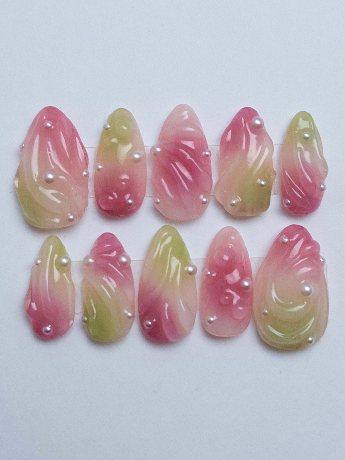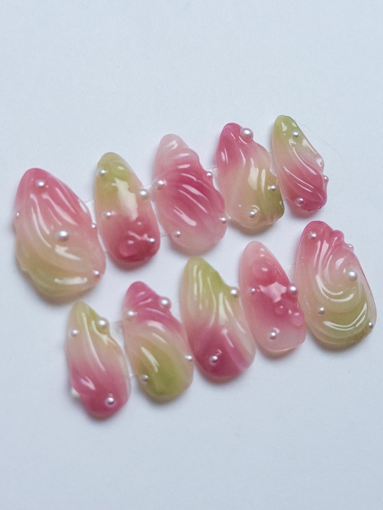 these high quality press-ons are handmade to give you a salon look in minutes. each set includes 10 nails + a full prep kit for a custom, secure fit. reusable, durable, and totally vibe-proof 💅