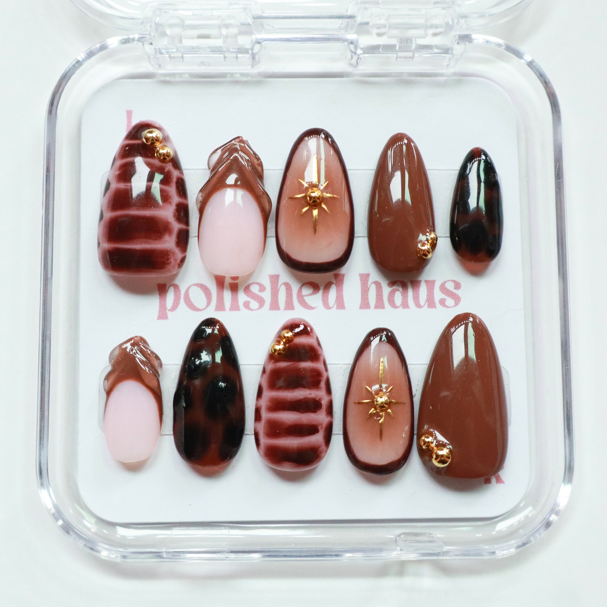 these high quality press-ons are handmade to give you a salon look in minutes. each set includes 10 nails + a full prep kit for a custom, secure fit. reusable, durable, and totally vibe-proof 💅