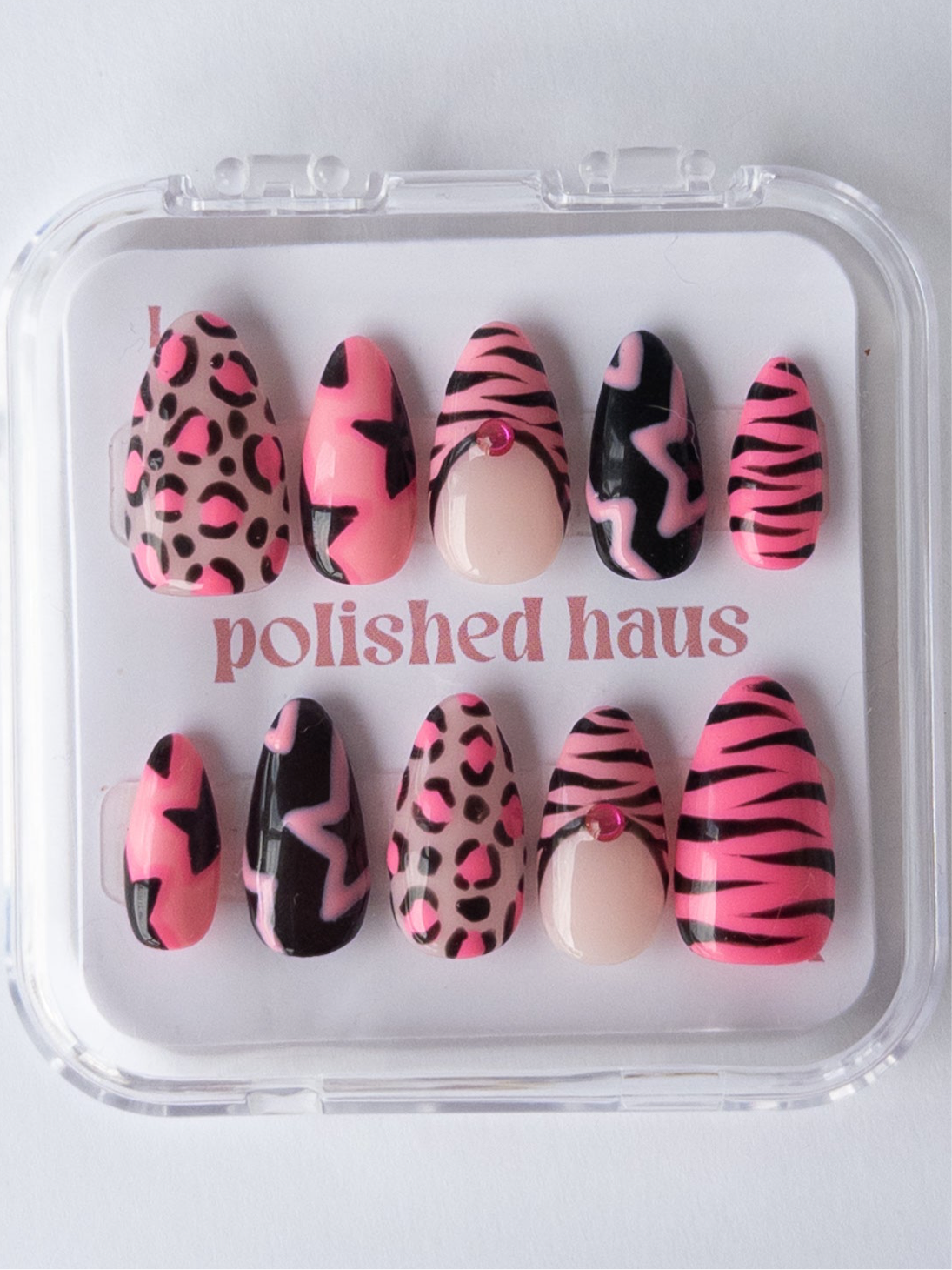 these high quality press-ons are handmade to give you a salon look in minutes. each set includes 10 nails + a full prep kit for a custom, secure fit. reusable, durable, and totally vibe-proof 💅